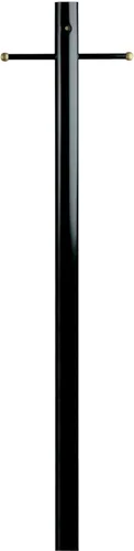 Poste de farol de acero con acabado negro Salida de comodidad de tierra y sensor de anochecer a amanecer Descanso de escalera con esferetas de color latón 84 x 3 pulgadas (alto x ancho) Garantía de cinco años contra defectos en materiales y mano de obra
