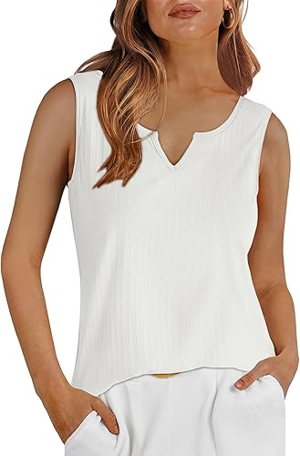 WIHOLL Camisetas sin mangas acanaladas para mujer, de verano, sin mangas, cuello en V, casuales, básicas, de punto