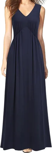 WOOSEA Vestido largo sin mangas con cuello en V profundo para mujer, suelto, liso, largo y casual